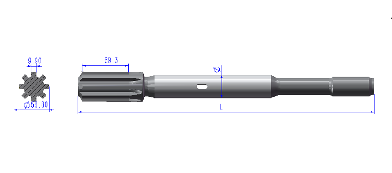 | SKT38-575-HLX5PE-45 | Shank adapter | Shank for HLX5 PE | T38 | Diameter 45mm | Length 575mm |